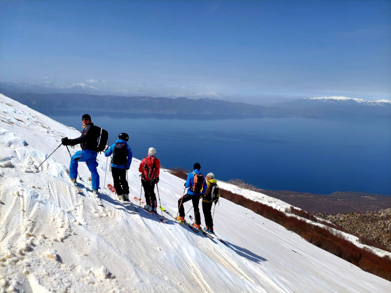 Early breakfast, and with a 4×4 vehicle, transfer to the 1,450 m start point. Tour toward peak Kepi Bard near Mount Korab. Ascent: 1,300 m / Descent: 1,300 m. After skiing, 2h.transfer to UNESCO Ohrid for an overnight.